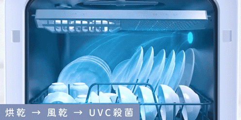 如果有奶瓶或大量的碗盤、餐具想進行深度的消毒清潔,則可選擇「消毒洗」模式。消毒洗將會以更高的溫度進行殺菌,藉由 UVC 照射長效抑菌,讓餐具原本殘留的細菌病毒徹底去除。