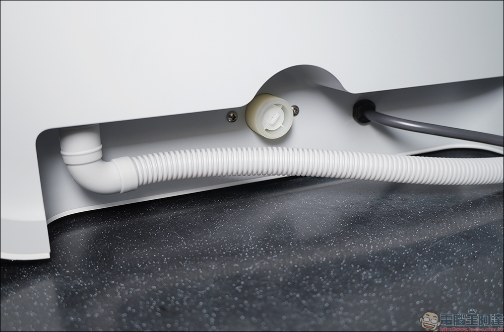 在 VIOMI 雲米方糖洗碗機的機身後方,除了設置電源線之外也分別有排水口與進水口。