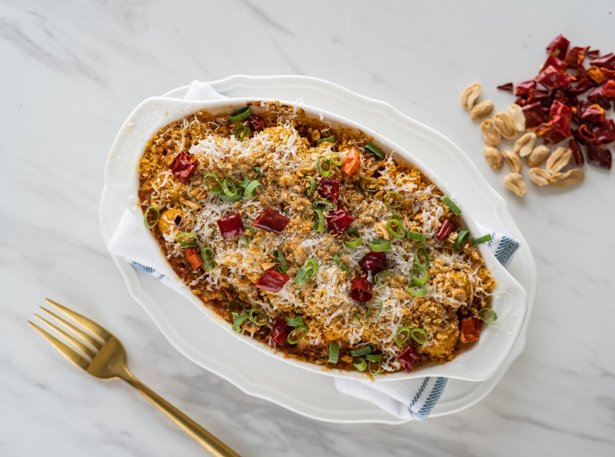 首先先來介紹幾款必點的義大利麵口味!第一個是主廚以自己愛吃的宮保雞丁發想,打造的「焗烤宮保彎管麵」,融合花椒麵包粉、香脆辣椒、烤花生、蒜酥等宮保元素,呈現麻香酸辣川菜滋味。妞編輯自己非常喜歡「開心果青醬蜂巢麵」,以菠菜及有機螺旋藻粉賦予蜂巢麵天然翠綠,青醬裡頭加了開心果、羅勒、蒜頭和起司,結合出濃郁飽滿香氣,多層次風味讓人一口接著一口吃不停。