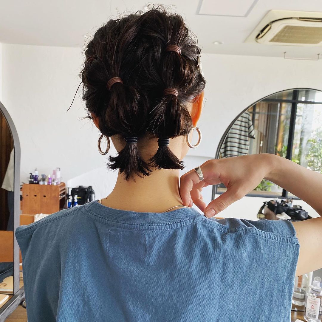 日系女孩想為短髮創造更多俏皮感,綁髮得變化可不只有丸子頭而已!短髮由於髮絲層次高容易亂翹,因此在綁髮上建議分區塊進行!可以將頭髮分成上中下三部分,並且分別以髮圈固定,不只能預防短髮層次亂跑,還有宛如拳擊辮般的效果呢~