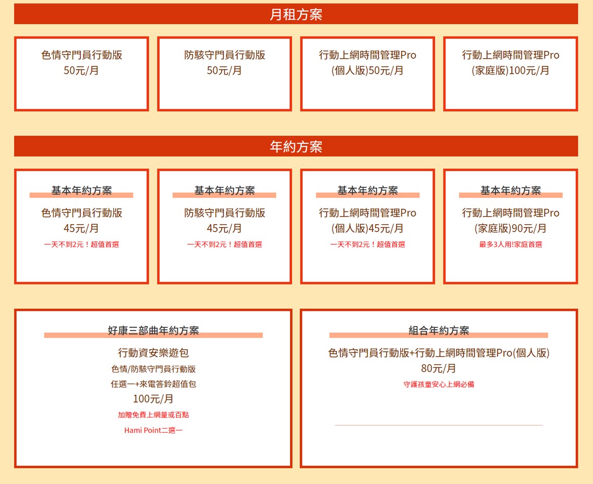 若欲購買,中華電信提供月租方案及年約方案,一天不用$2就可以享有行動網路資安安全管理服務、