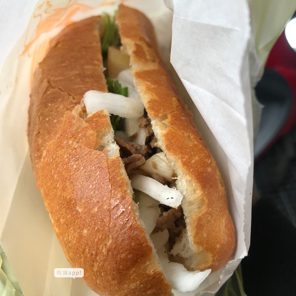 只賣豬肉和牛肉兩種口味的越南麵包,牛肉法國麵包的肉片完整且大片,內餡爽脆酸甜十分的開胃,牛肉片韌性中帶有咬勁,麵包體酥脆好咬、越嚼越香。
