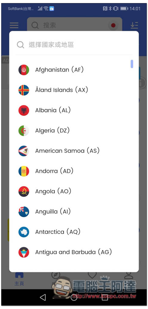 國家也能手動切換,上方搜尋欄右側有國家國旗,點一下就能切換到其他國家: