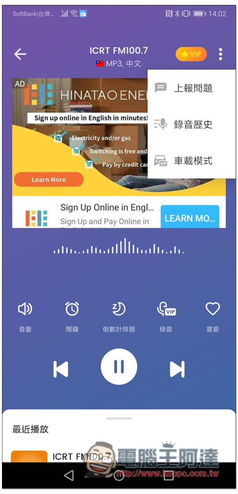 還會記錄你最近播放的電台,之前不小心忘記加入收藏,也可以到這記錄裡面找: