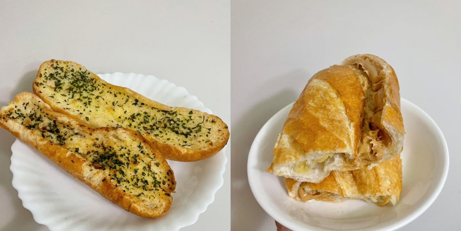 吃完鹹食當然也要來一份甜點,越南法國麵包工藝的麵包都會抹上滑順又鹹香的奶油餡再搭配抹醬,抹醬又好像不用錢一樣,每種餡料都會多到滿出來!而除了麵包外,店家也有販售蒜味切片、可頌、蛋塔等小點,飲品部分也有咖啡、奶茶、可可等,根本就是罪惡全餐,熱量什麼的明天再說啦!
