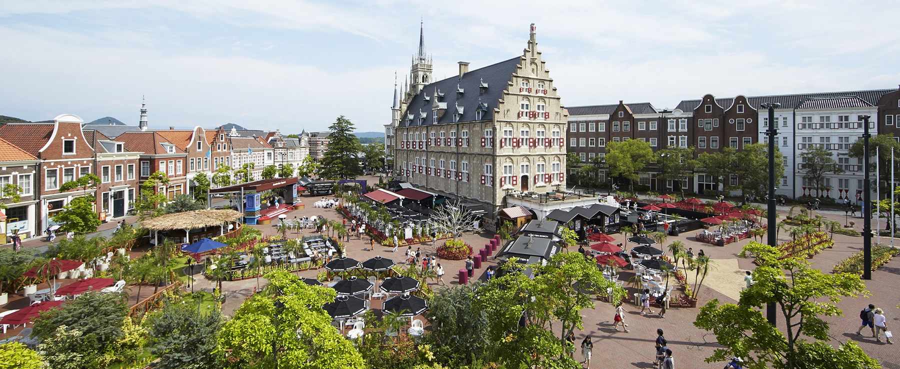 「豪斯登堡」的名字源於荷蘭王室三大宮殿之一的豪斯登堡宮,這座主題樂園佔地極廣,歐式高級城鎮的樣貌讓人宛如走進皇宮中的後花園!
