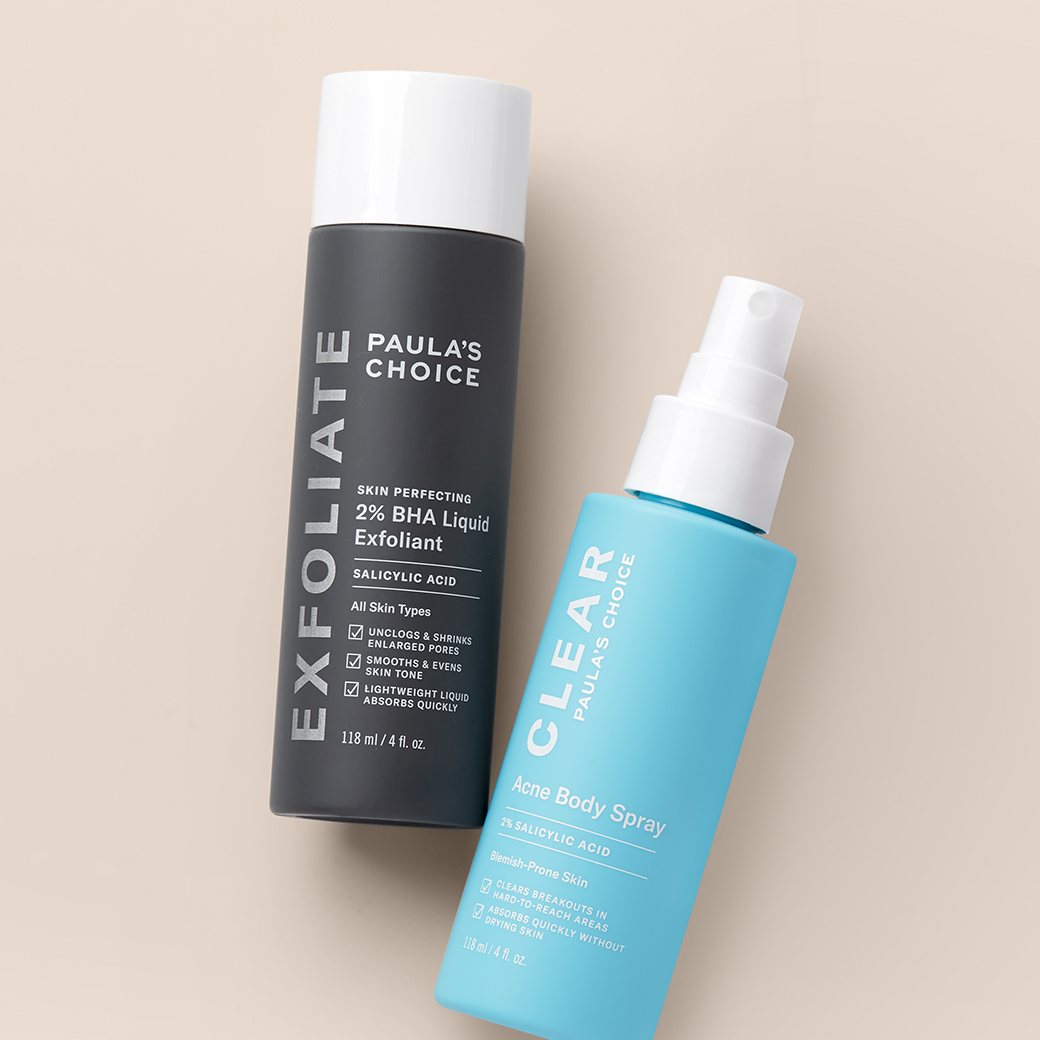 想要徹底跟粗毛孔、黑頭粉刺、大痘痘說再見,同時照顧臉部肌膚與身體肌膚,絕對少不了 2%水楊酸精華液與淨無痘2%水楊酸美體噴露。水楊酸可以清除油膩毛孔內外角質,均勻調理油脂分泌;而小分子美容液,無油無負擔,適合油痘肌使用。想要穩定膚況,這個組合不能少~