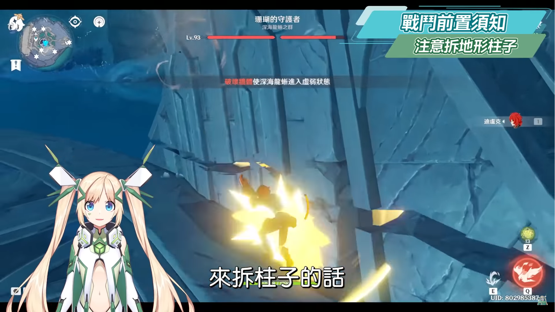 哈囉哈囉!我是虛擬Youtuber璐洛洛,在《原神》2.4版本更新後,只要你有解鎖「淵下宮」這張地圖,並且解完主線任務後就可以在地圖中心找到深海龍蜥,若是還沒有解淵下宮主線任務的話,可以點擊右上方資訊卡查看相關任務攻略,戰鬥過程中要注意的是BOSS是由兩隻一冰一雷所組成的雙子龍蜥,目前這對BOSS會掉落的龍嗣偽鰭是申鶴所需要的突破材料,稍後影片中也會帶來BOSS的各招式拆解和實戰畫面,以及補充2個深海龍蜥的相關成就,帶你以動物星球頻道的探索角度來更了解雙子深海龍蜥,只要熟悉相關的招式後,要無傷攻略也是非常容易的,那影片開始前,若你還沒有訂閱洛洛的頻道的話,記得先訂閱一下唷!
