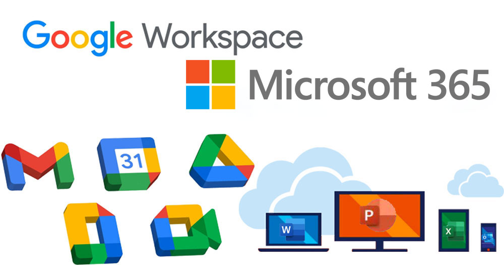 微軟則是構築於自家的 Office 專有權(過去稱為 Office 365,現在叫 Microsoft 365),所包含的應用程式皆為可自動更新的同捆包之中,端對端服務(包括 Exchange Online、OneDrive Business、SharePoint Online 和 Microsoft Teams)讓團隊從本地伺服器遷移到雲端有了更簡易的途徑。員工可利用熟悉的電腦版應用程式造訪包含 Outlook、Word、Excel 和 PowerPoint 等服務,也可使用網頁版替代方案。