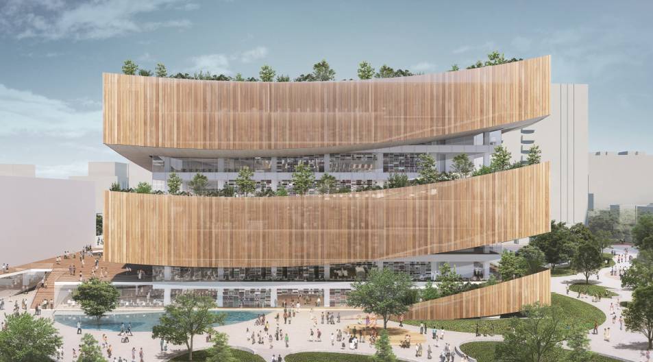 而光是圖書館棟,就規劃有地上8層樓、地下2層樓,2到7樓又切分為樂齡閱讀及親子研習教室、青少年閱覽及一般閱讀館藏區、地方文獻區、多功能活動室、數位學習區及雲端書屋等,8樓則是開放式景觀庭園,也設有空橋可以連接到一旁的電影院。另外,政府更規劃2億元的經費購置圖書館館藏,將添購多樣化的中外文實體圖書,以滿足各族群的借閱需求。