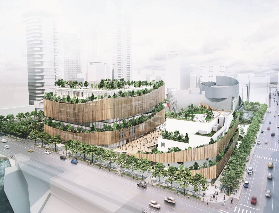 在電影院棟部分,總共規劃5層樓,1樓為主題餐廳、2樓文創以國際動漫和潮玩公仔為主題,還有霹靂布袋戲展演空間;3樓則打造為影視文創基地,並且導入AR、VR、MR等設備,4到5樓則為設有5個國際級影廳的國賓影城,也特別規劃親子影廳,提供闔家觀賞的優質影片,地下2層則為可停放400停車位的停車場。值得一提的是,電影院外大面積牆面也將設為投影展示區,作為戶外劇場使用,感覺就像國外的露天電影院,實在太令人期待啦!