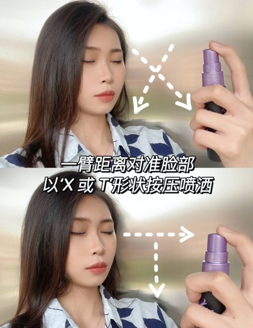 最後也可以拿出定妝噴霧,以X字+T字的雙重噴法加強全臉定妝,就可以讓美美的腮紅完美定型,把大寫的「顯嫩感」妥妥焊接在臉上!