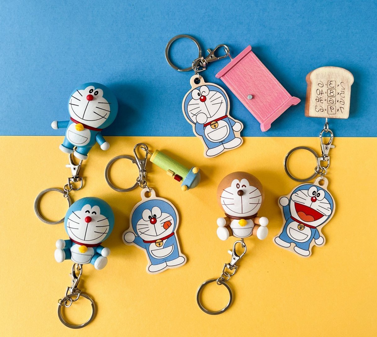 首推「木頭立體公仔鑰匙圈」,有經典、歡樂以及特別款三種立體公仔,另外更有記憶麵包、任意門以及縮小燈設計,讓粉絲們可以隨時把心愛的哆啦A夢帶著走,全套6款隨機贈送。