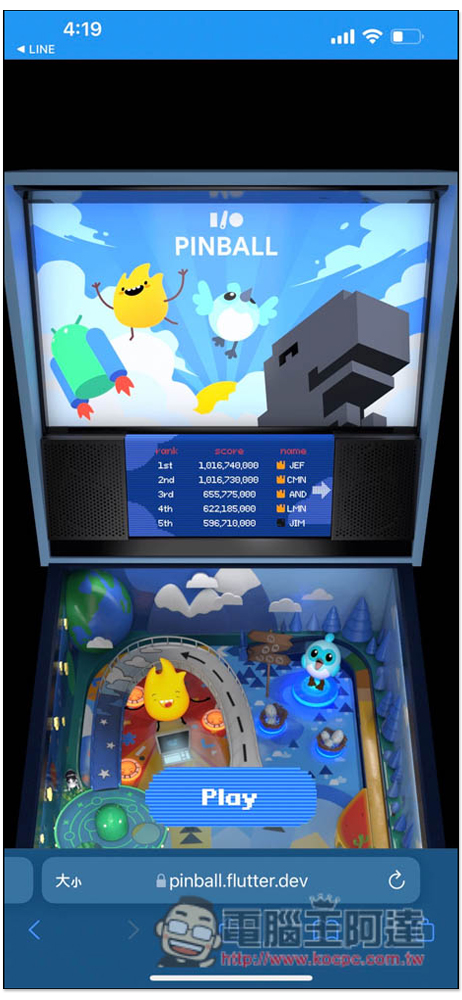 幾天前的 Google I/O 活動,Google 上線一款全新 "立體彈珠台遊戲網頁版",使用 Flutter 框架開發,打開瀏覽器就能玩,無需安裝任何東西,而且是電腦、iOS 與 Android 都能玩,不僅速度很順,遊玩性也不錯,還能跟全球玩家比較誰得分最高,很適合拿來打發時間。