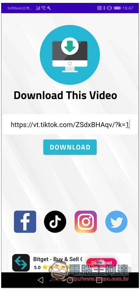 現在網路上有不少免費下載社群網站影片的工具,但因為是網頁版,對手機操作來說不是那麼方便,大家應該還是比較習慣 App。如果你是拿 Android,那這款 Download This Video 就是很不錯選擇,支援下載 Facebook、TikTok、Instagram 與 Twitter 網站影片,貼上網址就會開始下載,你不用選任何格式或畫質,簡單又好用。