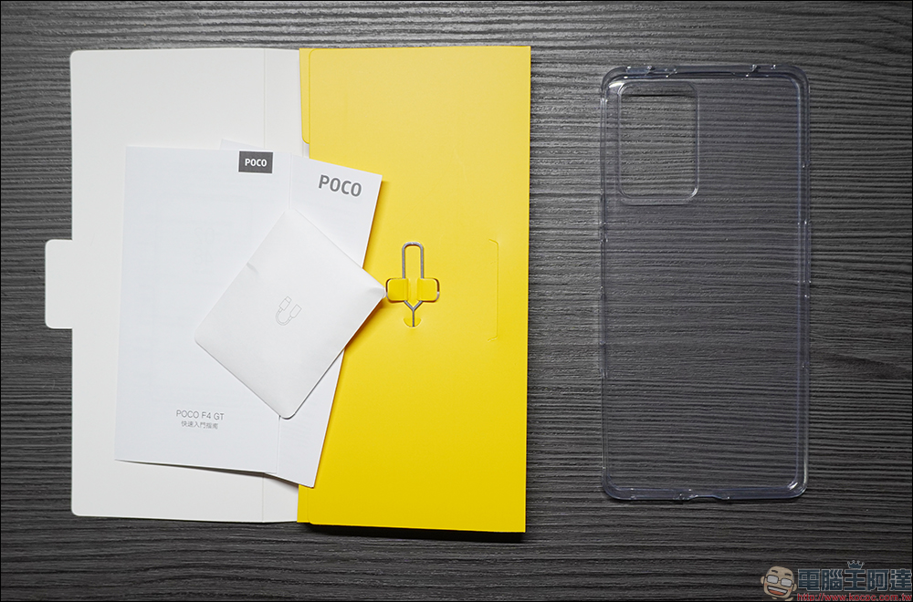 包裝內容物除了 POCO F4 GT 手機本體,還有 120W 快速充電器、 USB Type-C 數據線、SIM 卡插針、保護殼、入門指南、保固卡以及 USB Type-C to 3.5mm 轉接線: