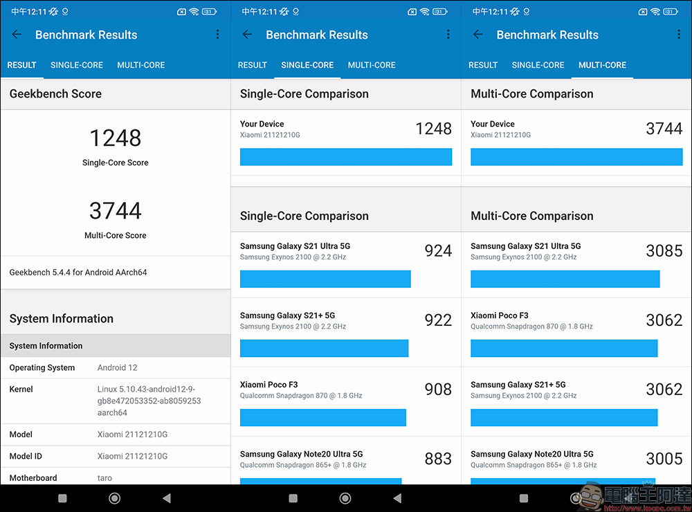 Geekbench 5 單核心 1,248 分、多核心 3,744 分: