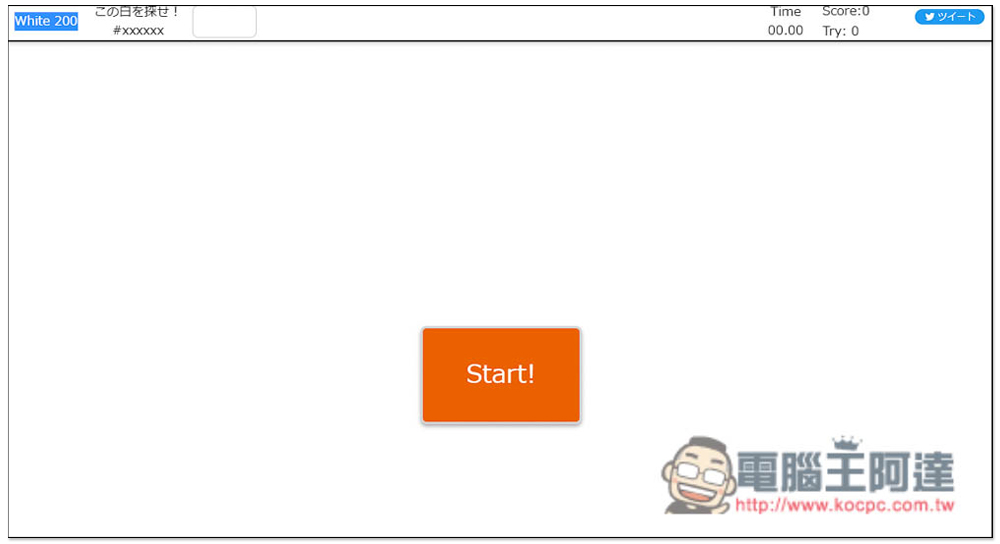 進到 White 200 小遊戲網頁後,按 Start! 即可開始: