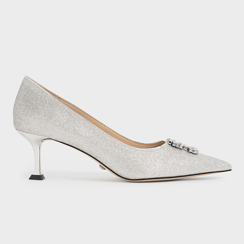 正因為婚鞋所代表的意義與其他日常鞋款截然不同,因此最懂少女心的Charles & Keith特別將婚鞋系列獨立出來,採用更精緻的工藝和上等的面料打造這個充滿幸福寓意的高端系列。滿版金蔥鞋面宛如滿天星斗,讓你在婚禮殿堂上襯著方型寶石釦攫取現場所有視線,或是成為婚紗拍攝現場的最佳神隊友!(售價:NT$ 2,590)