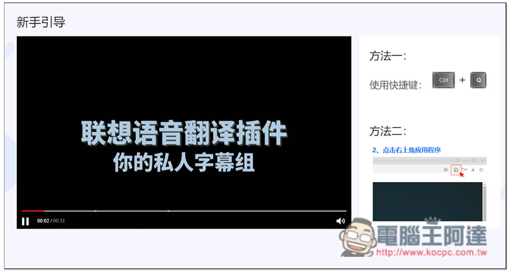 有新手引導影片,第一次使用可以看一下,簡單來說,就是你打開影片之後按快捷鍵 Ctrl+Q,它就會啟用即時翻譯功能: