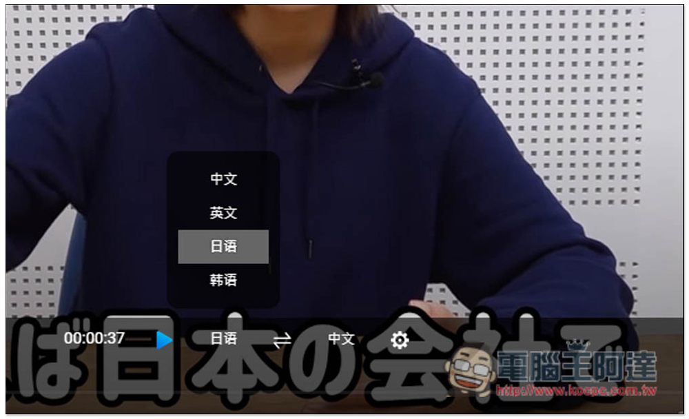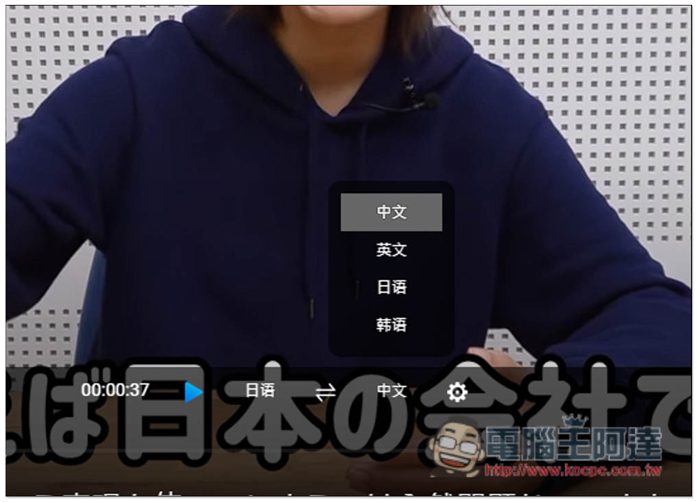 點擊語言可切和其他,支援中文、英文、日文與韓文,左側是設定影片語言,右側才是翻譯語言:
