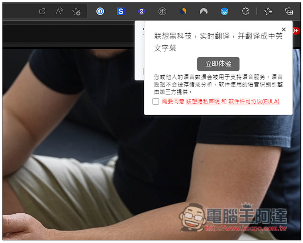 首次使用需要同意聯想隱私聲明和軟體許可協議(EULA),擔心的人可以看一下,沒問題就打勾同意,然後按立即體驗: