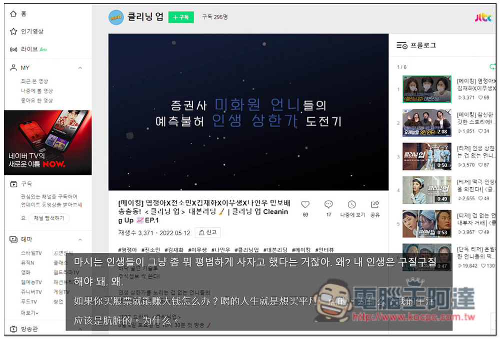 韓國的 NAVER TV 也沒問題,可以即時翻譯,不過速度一樣會慢一點,如果跟不上,可以先暫停字幕翻譯與影片,讀完內容後再繼續播放: