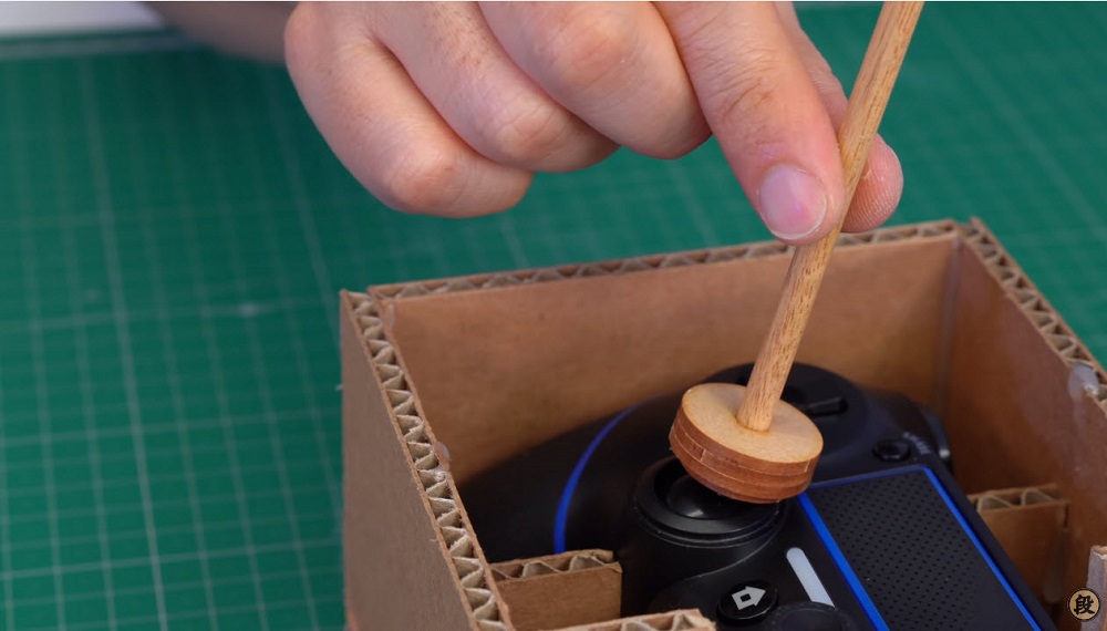 DanCreator 設計的《電車GO! 》街機版是採用 PS4的家用主機版,因此就從一塊紙板跟PS4手把為開端,搭配木棍另用巧妙的高低差,兼顧操作桿的外型又能影響手把的操作。