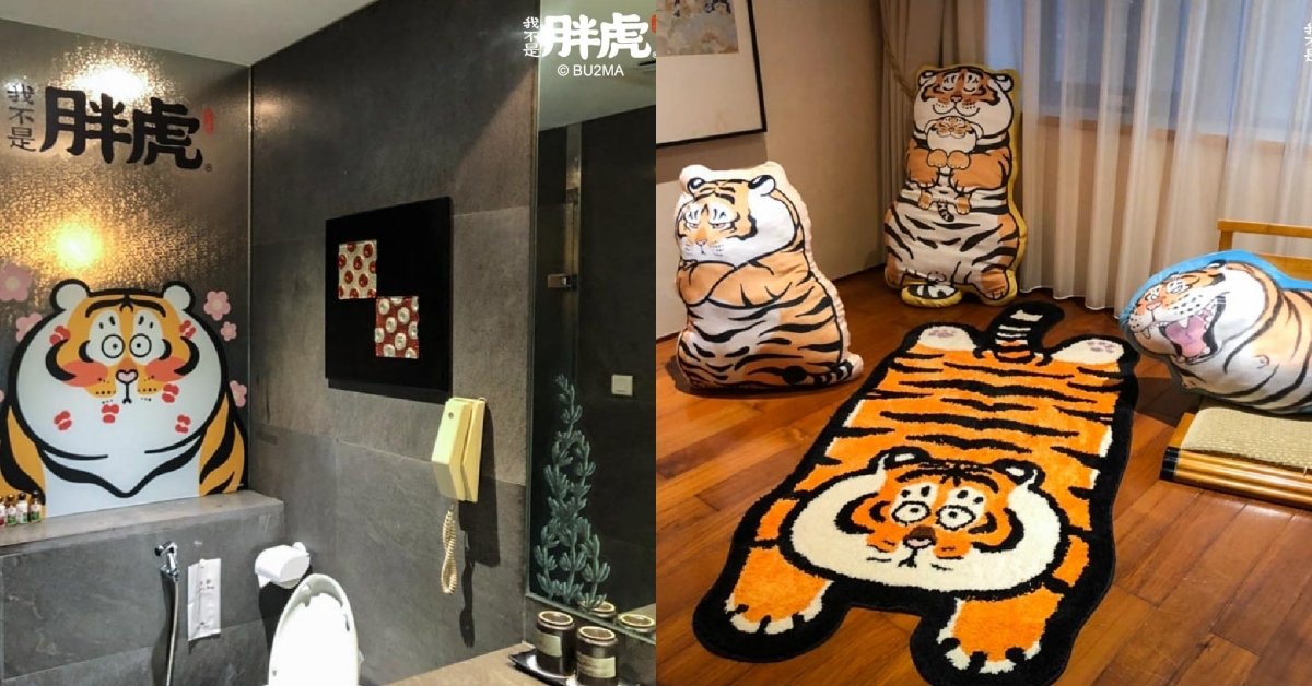 這次的「胖虎in春天」主題房,把「我不是胖虎」的周邊商品與春天溫泉客房結合,房間每個角落都有「厭世的胖虎」和「呆萌的小虎」出沒,不只是牆面上有超萌的巨大胖虎,還有胖虎床單、胖虎棉被、胖虎枕頭、胖虎抱枕、胖虎杯等,連溫泉浴室裡也有超級呆的胖虎,入住就能和他們一起睡覺、一起泡湯、一起放輕鬆,實在太療癒又享受!