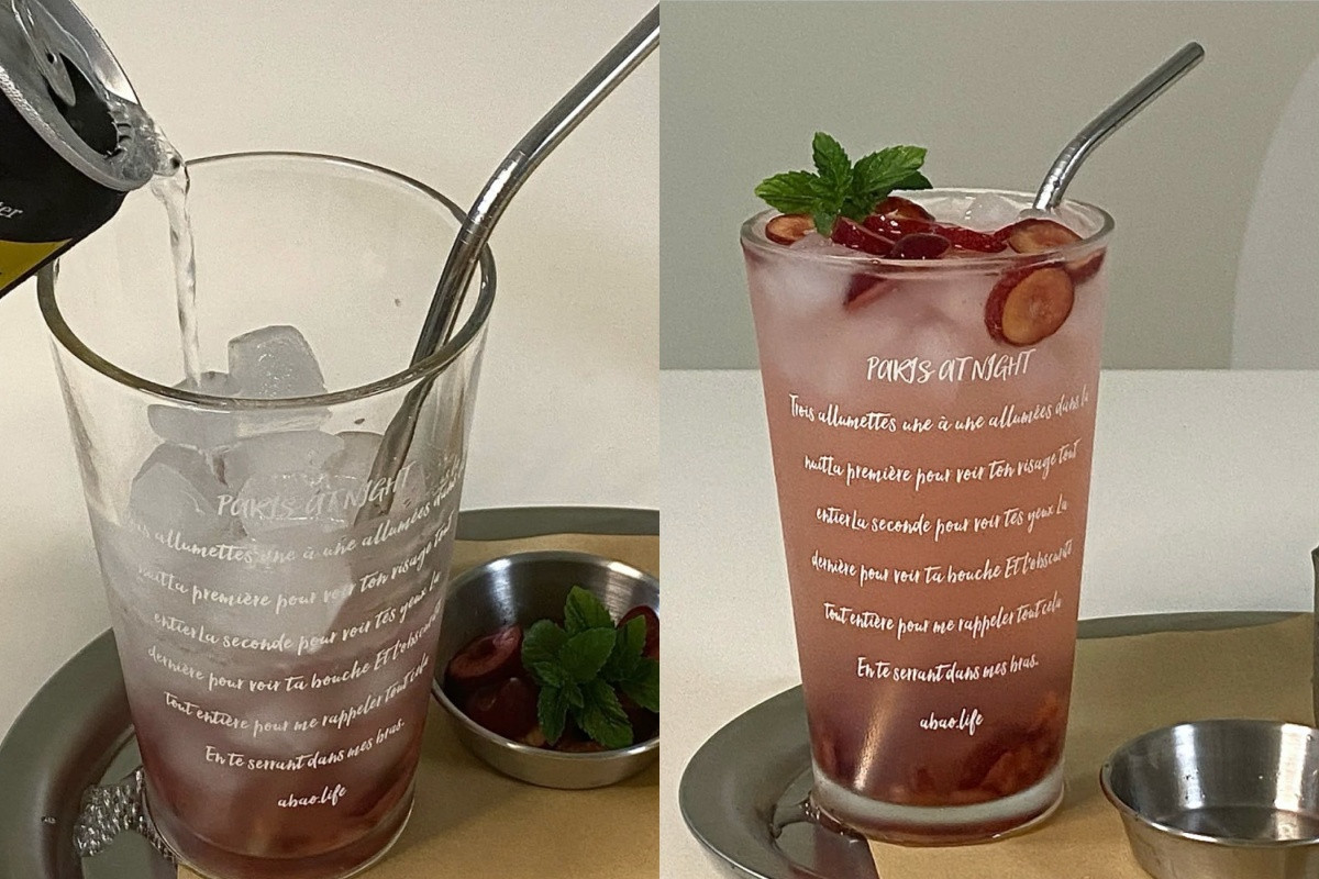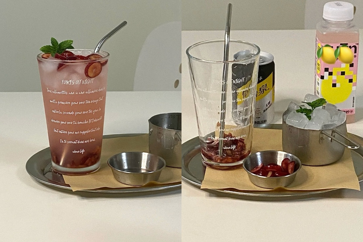 再把櫻桃果肉放入杯底,倒入檸檬汁和氣泡水,最後斟酌放入冰塊以及薄荷葉即可完成,這款快樂減肥水一入喉就可以感受到微醺沁涼感,櫻桃含有豐富的維生素C,還能減少自由基對人體的傷害、預防失眠困擾,把它當作飲料喝也不會有熱量負擔&罪惡感。