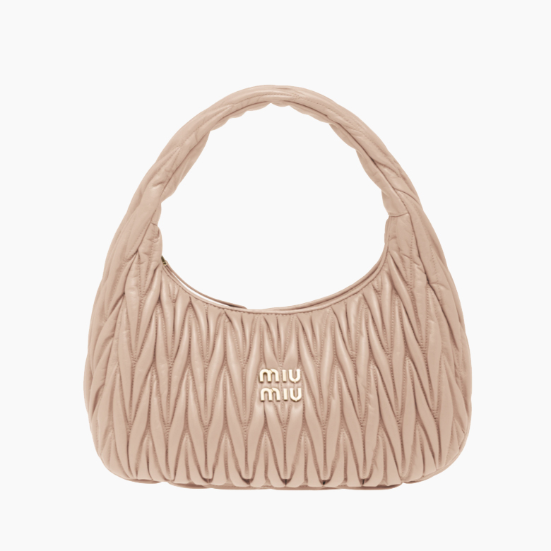 2022夏季Miu Miu以經典半月腋下包輪廓加以變形,推出採用柔軟納帕小羊皮製成、結合經典Matelassé人字紋的全新Miu Wander手袋,圓弧輪廓加上小巧可愛的尺寸,讓所有揹上它的人都能瞬間擁有逆齡效果。 除了照片中百看不膩的米色之外,同時還有推出甜美粉與亮麗黃,讓你輕鬆點亮造型回到18歲!