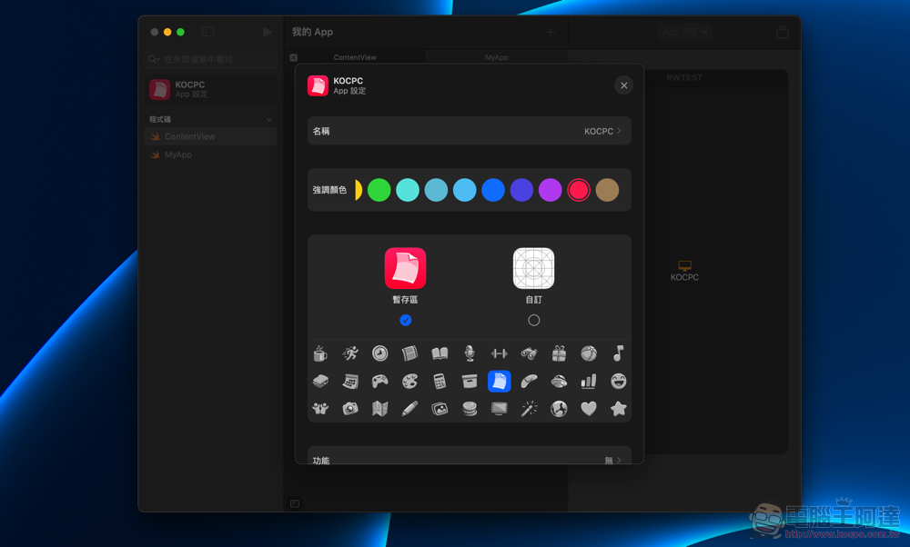 許多人對 App 的第一印象「外在圖示」也可以透過左側的設定改變,可以自訂圖示: