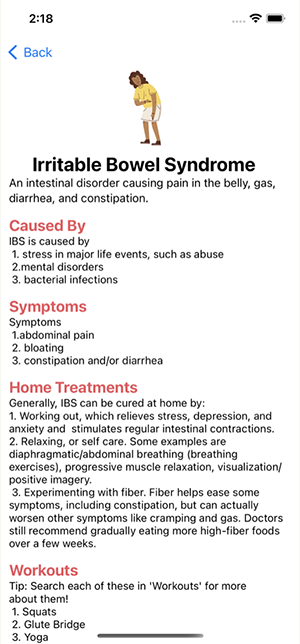 說起來,Abinaya 也是在近幾年看到疫情對世界地影響及自身患有的腸胃道疾病的關係。發想覺得可以為這樣族群的人開發 App。最終完成了整理飲食調整與透過健身等方式,藉此改善特定症狀的快速查詢應用:Gastro at Home。
