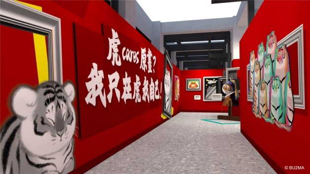 展區二「虎 cares 原畫 ? 我只在虎我自己」,在不二馬大叔的筆下,他時常結合國畫文化和西方藝術兩種風格,創造出一隻隻「名畫虎」,不管是《虎之自畫像》、《戴珍珠耳環的老虎》、《創造胖虎》還是《吶喊的虎》,想不到的巨作都在這,除了保留名畫原有的細節之外,更因為胖虎的加入給人一種萌趣和搞笑感,乍看之下一點都不違和,特別是有些胖虎胖到都跑出畫框(笑),那不是肉,是溢出來滿滿的「可愛」!