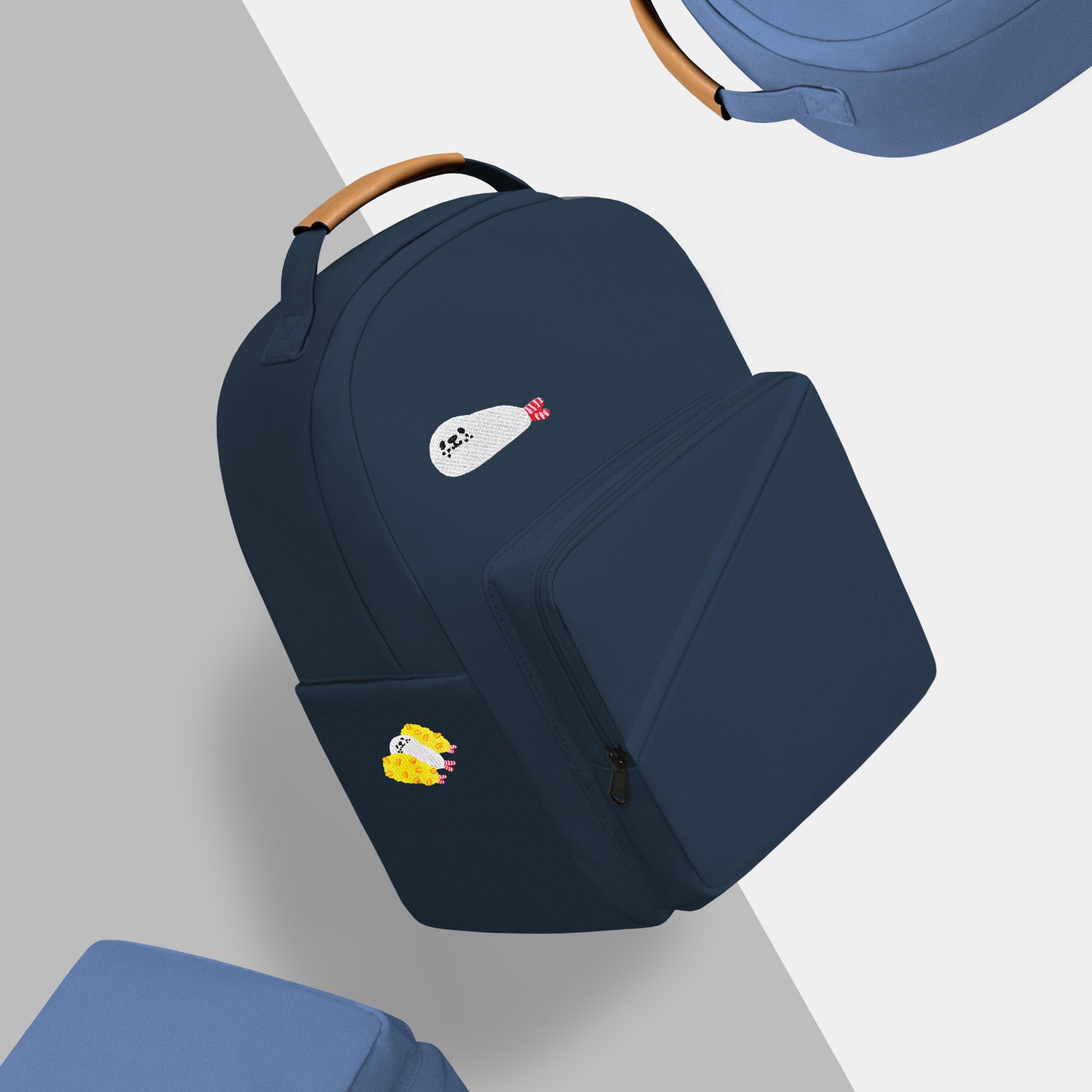 背包上如果要刺繡,當然要刺個特別一點的圖案!這款背包上刺有炸蝦跟海豹的圖案,看著炸蝦跟海豹搭配在一起的樣子,怎麼肚子瞬間覺得有點餓起來?