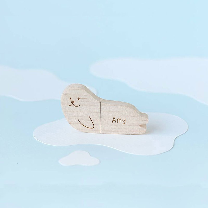 這款 USB 隨身碟很特別,設計成一整隻海豹的造型。隨身碟的材質選用優質的楓木,而且海豹的尾巴還能客製化刻上名字,無論是自用或送人當禮物都很適合!