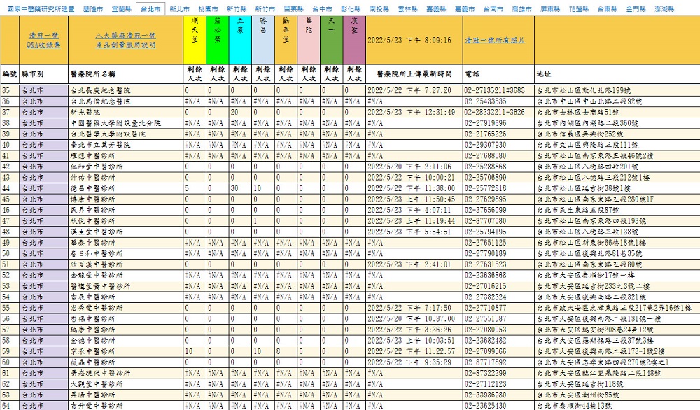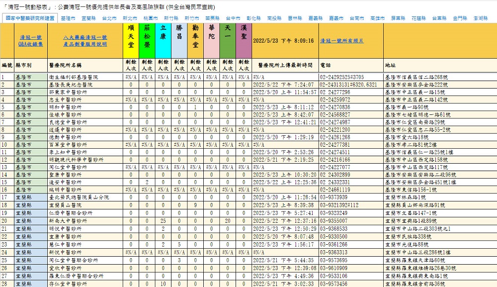 由於「公費清冠一號動態查詢表」仍仰賴支援醫療診所填寫,因此庫存量可能仍僅作參考,若有申請需求者仍建議透過查詢表掌握概略狀況後,再行去電詢問實際庫存,以免白跑一趟。