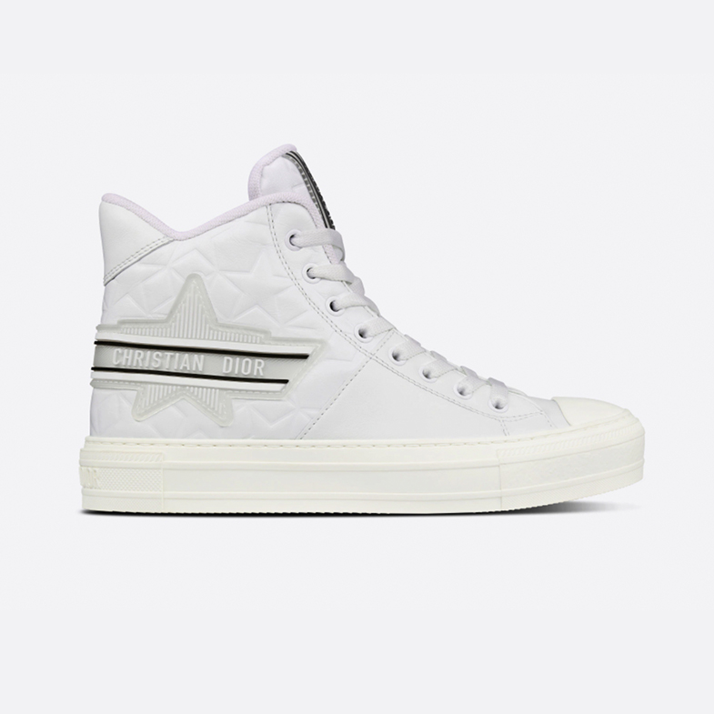 以儂編自己觀察身邊閨密的整體經驗,發現喜愛高筒鞋款的女生其實不在少數,這雙Walk'n'Dior 星星運動鞋,運用大量白色羊皮和小牛皮拼接製作,並呼應品牌全新運動系列主題印上Dior Étoile 主題圖案,演繹 Dior 先生的標誌星星符號。(售價:NT$36,000)