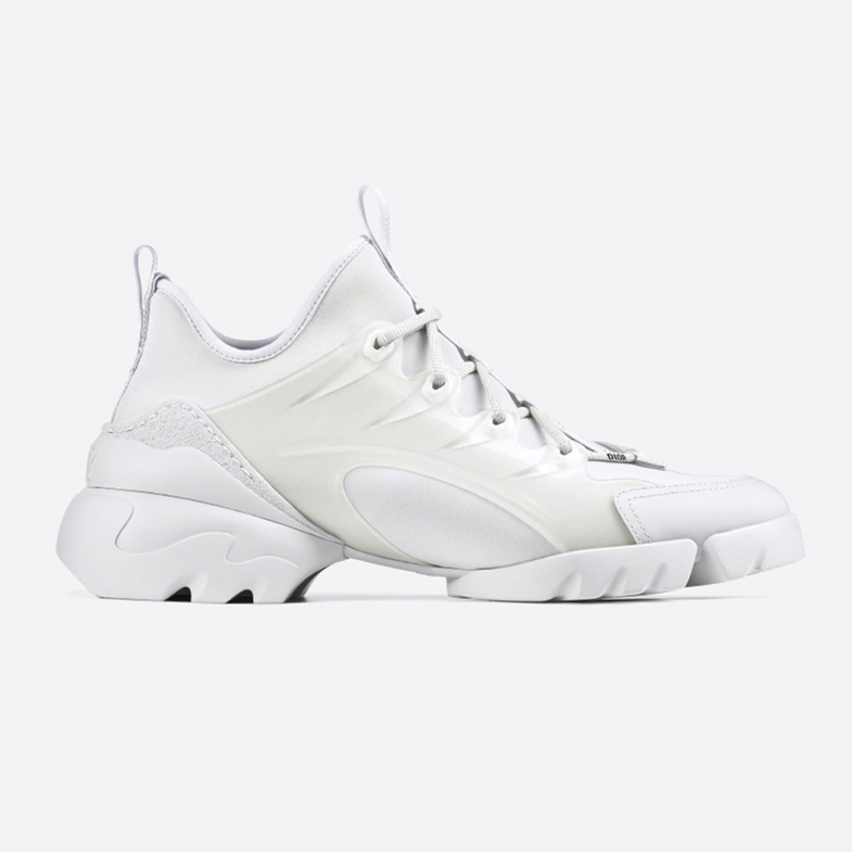最初於 2019 春夏系列時裝展亮相的D-Connect 運動鞋,現已成為Dior最經典的設計之一。採用略帶彈性的科技布料製作並運用類解構重組的雙層厚橡膠鞋底,再於鞋側搭配透明橡膠鑲片結合不同物料製造層次感,展現非常具當代風格的科技感造型。(售價:NT$35,000)