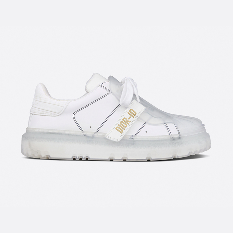 為了滿足女孩們對增高厚底的需求, Dior-ID 運動鞋特別採用極具特色的透明橡膠鞋底,讓整體鞋身看起來精實卻不笨重。白色小牛皮鞋面點綴淺灰色縫線讓整體造型更有復古感,若仔細一看會發現設計師特別在鞋帶處使用半透明橡膠鑲片和魔鬼氈,讓整個鞋款看起來更有童心。(售價:NT$36,000)