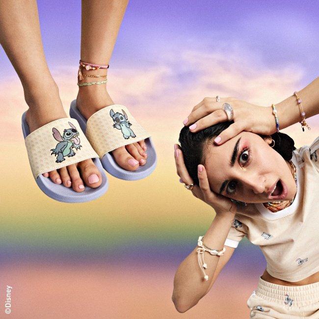 愜意的日常時光,也不要忘了帶上史迪奇,別讓牠孤單…這波還推出一款超萌的「史迪奇聯名拖鞋」,將全印花的三葉草標誌與史迪奇完美融合,搭配蜂蜜黃以及紫丁香色,一雙就彷彿置身夏威夷度假勝地,讓你瞬間放超鬆~