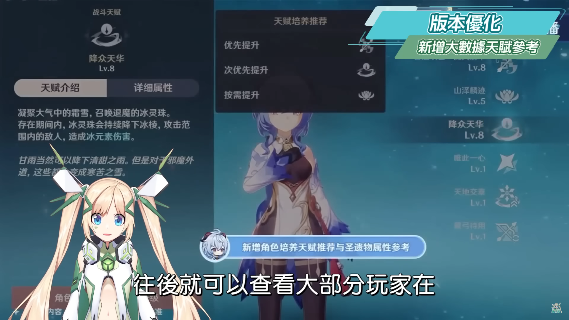 第二個是在每個角色的天賦技能介面也會增加一個「天賦參考」的按紐,會收集大部分玩家的大數據,往後就可以查看大部分玩家在培養角色天賦技能時,通常都是優先選擇哪一個天賦升級。