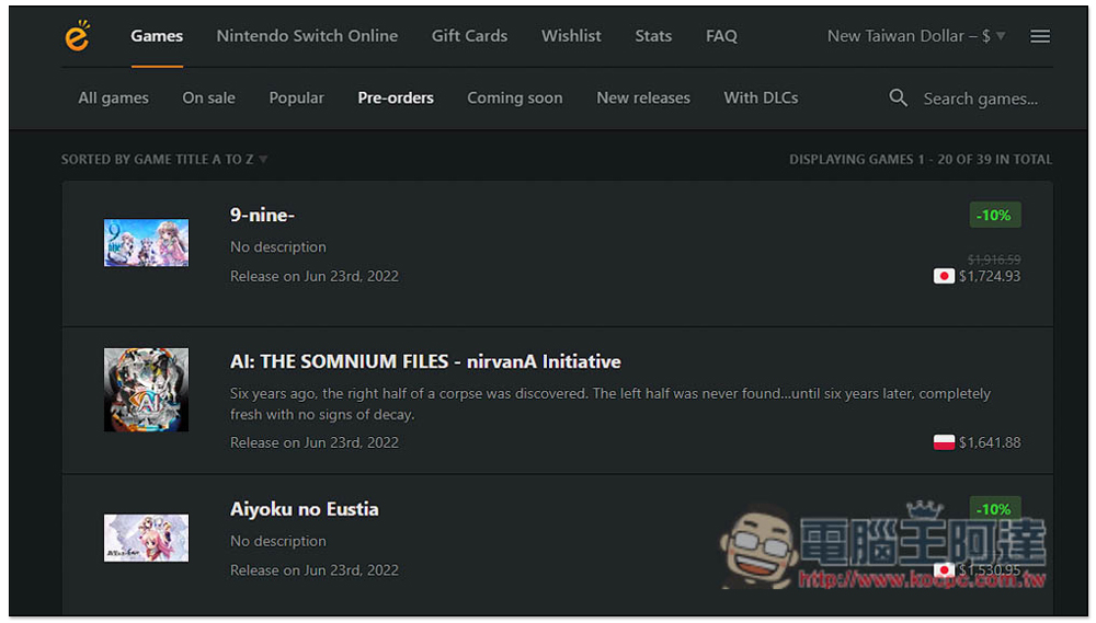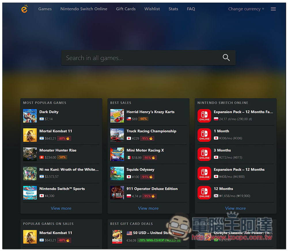 eShop Prices 線上查詢各國、最便宜的 Switch 遊戲價格