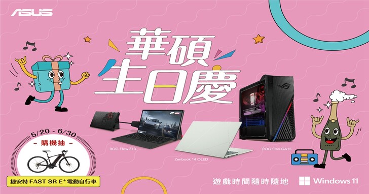 華碩生日慶!購機登錄抽電動自行車,壽星VIP點數三倍送