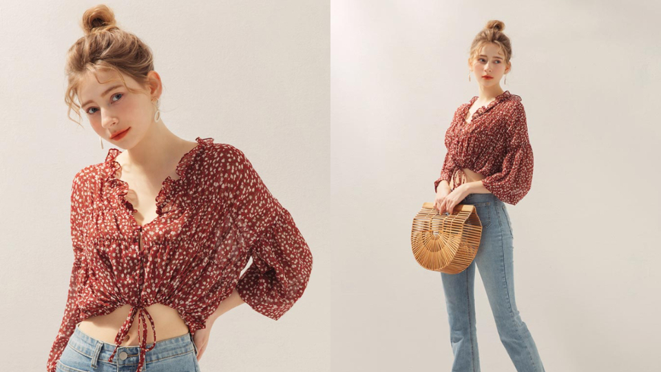 說到碎花,怎麼可以少了服飾!無論是在上衣、洋裝、外套,碎花圖案都佔有一席之地。而在春夏之際,便是最適合穿上朝氣小碎花的時機~這款短版上衣的抽繩設計可以顯露好身材,推薦給喜歡純慾風的你,誰說清新跟性感不能共存!