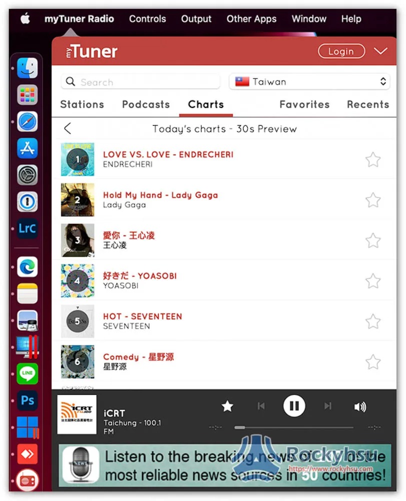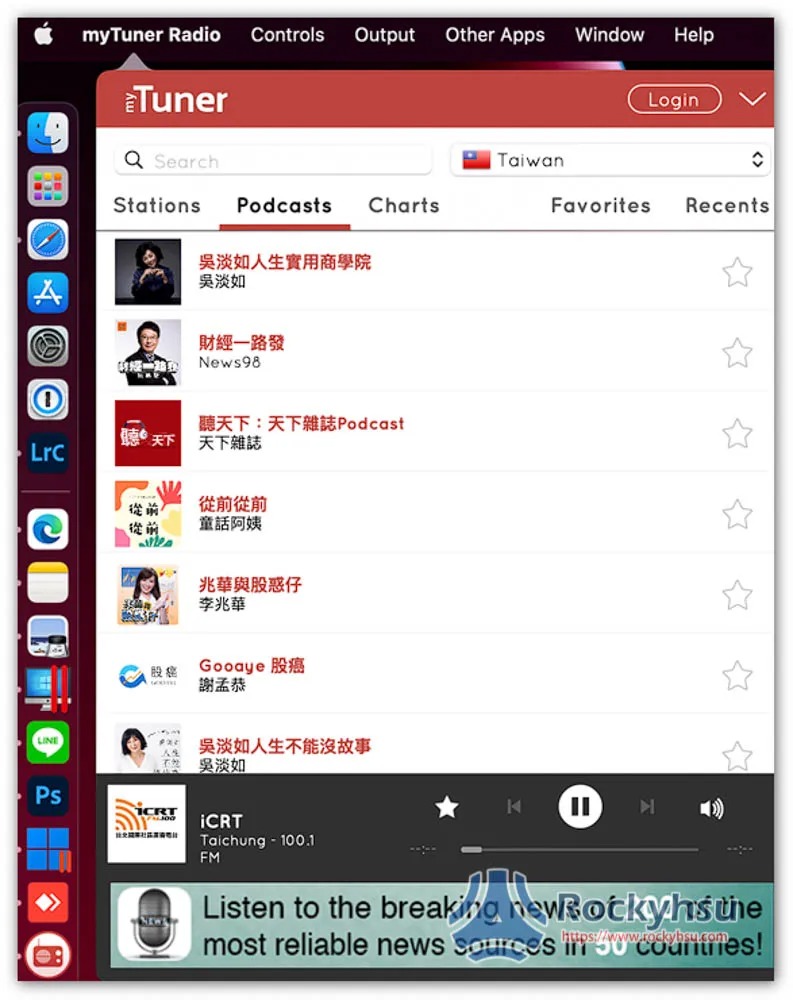 myTuner Radio台灣是一款 Mac 非常強大的電台音樂播放 Apps,收錄高達 200 個國家,台灣、日本、韓國、美國、英國等等都有,總廣播電台數量超過 4 萬個,還整合各國的 Podcast、熱門音樂排行榜,功能非常豐富,對於喜歡聽音樂、學外語、或找不到好用 Mac 免費音樂的朋友可以試試看。