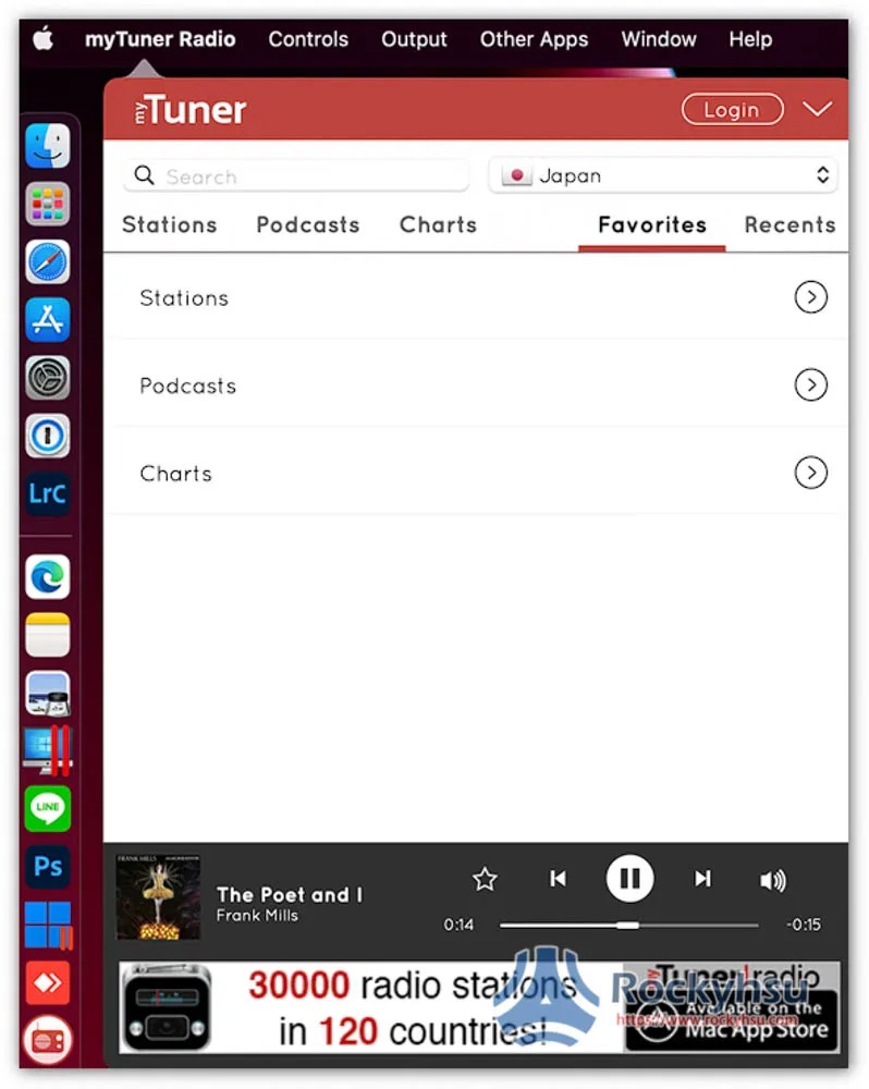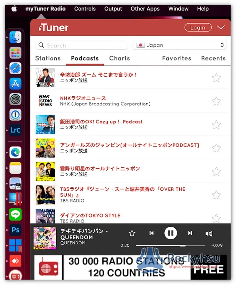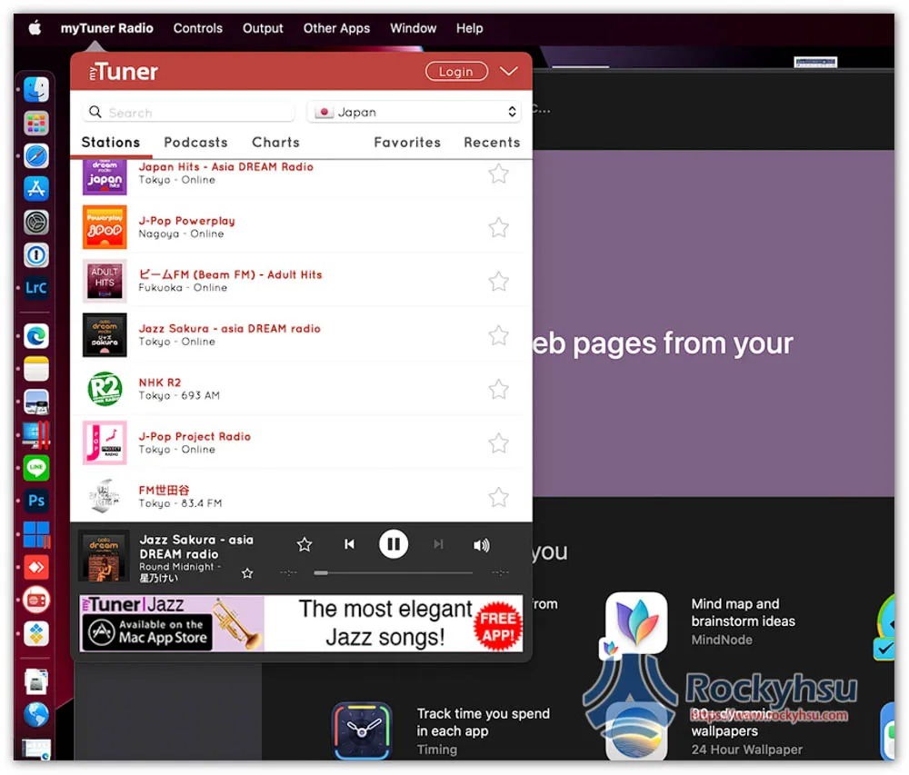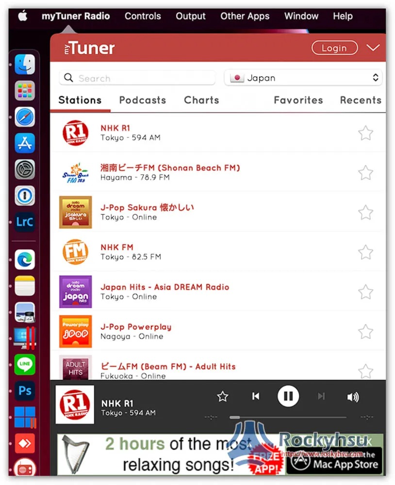 像我選擇 Japan 日本,Stations 電台清單就會變成日本廣播電台: