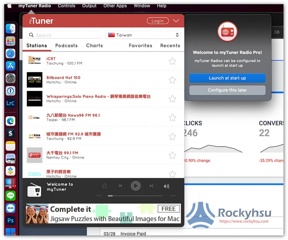 首次打開會問你要不要開機就自動啟用這款 App,預設廣播電台位置為台灣,因此 Station 列出的都是台灣電台,我快速瀏覽一下應賅有超過 30 台,幾乎全台電台都有: