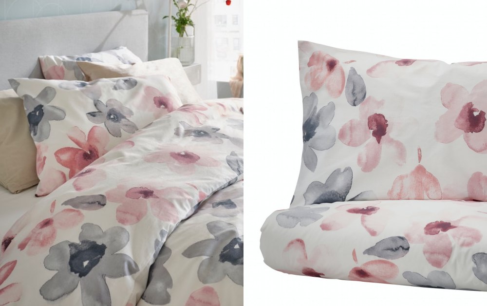 寢具追求涼感的同時,也能兼顧顏質!這一款「LAPPNYCKLAR雙人被套組」柔和的粉紅色系櫻花圖案,並搭配上裝飾性布質鈕釦,能為空間營造清新氛圍,視覺上先涼一下。材質方面,則選用萊賽爾纖維與棉混紡的密織布,觸感溫起來柔軟之外,還能達到涼快又清爽的效果,讓視覺和觸覺都能有效降溫。