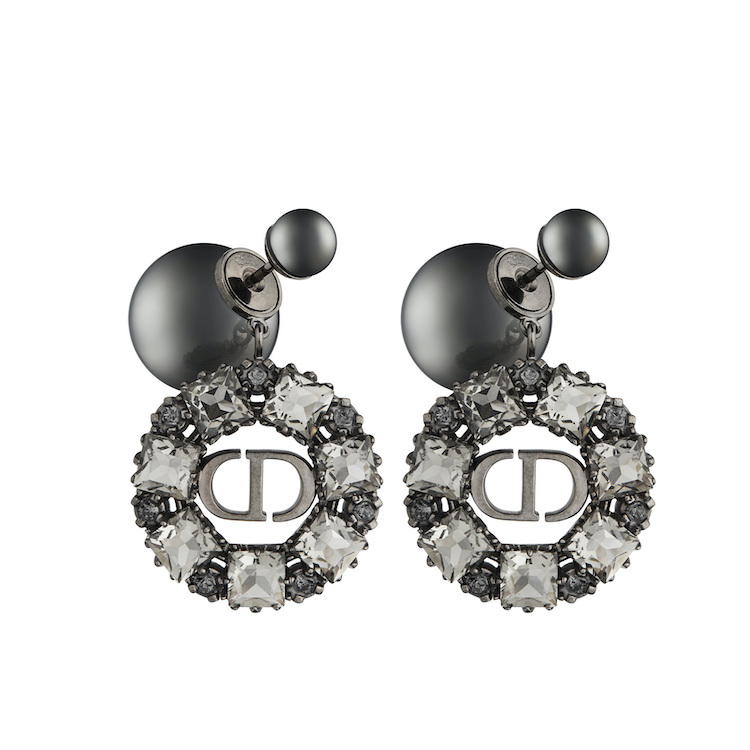 Dior Tribales黑銀水晶與灰色釕金屬珍珠耳飾